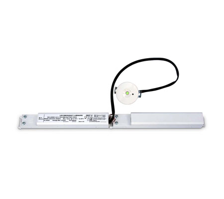 An LED self test driver and battery pack in an articulated plastic housing, connected via a 500mm wiring loom to the down light assembly containing a 3 watt LED. The down light operates in emergency mode and has a multi-Low prole down light in with a die cast aluminium heat sink.
